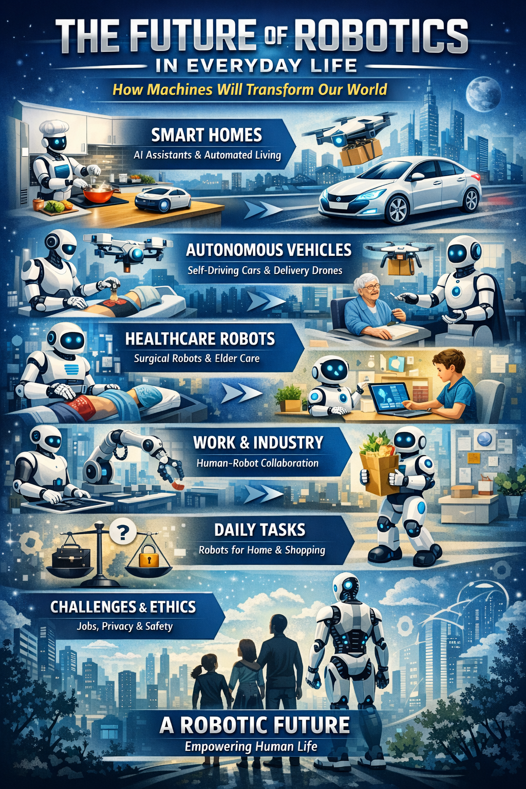 The future of robotics in everyday life is both powerful and inevitable. As these intelligent machines become smarter and more accessible, they will reshape every aspect of our lives.